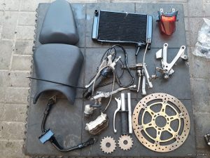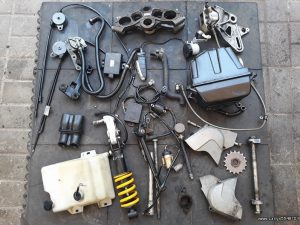 Ζάντα μπροστά πίσω / κάλυμμα ρεζερβουάρ κουβούκλιο / ψαλίδι πυρος / γραναζι 61201 – 17 / βιβλία σέρβις / κοντέρ / εξάτμιση / τάπα ρεζερβουάρ κλϊδαριές / τρόμπα φρένou / μανέτα συμπλέκτη / φανάρι μπροστά / πυρος μπροστά ρόδας / μπροστινό σύστημα κομπλέ καλάμια σταυρός τιμονοπλακα / μπροστινό φτερό / φανοστάτης καγγελο οργάνων / ζελατίνα σέλα οδηγού συνεπιβάτη / αντίβαρα / πλέσιο με διεγραμένη αδια κυκλοφορίας / δισκόπλακα μπροστά πίσω / stan / δαγανα μπροστά / κόρνα / βάση κινητήρα / κολάρα νερού / δοχείο παραφλού / παπάς / καμπιρατέρ / πολαπλασιαστής / δόχιο λαδιού / ντίζα καζίου συμπλέκτη / λασπωτήρας πίσω τροχού / γκαζιέρα διακόπτης / ηλεκτρονική / ανορθωτής / πλεξούδα / πατάκη δεξί αριστερό / τιμόνι / ψύγιο νερού / μασπιες δεξιά αριστερά / αμορτισέρ / υποπλέσιο / κλπ …